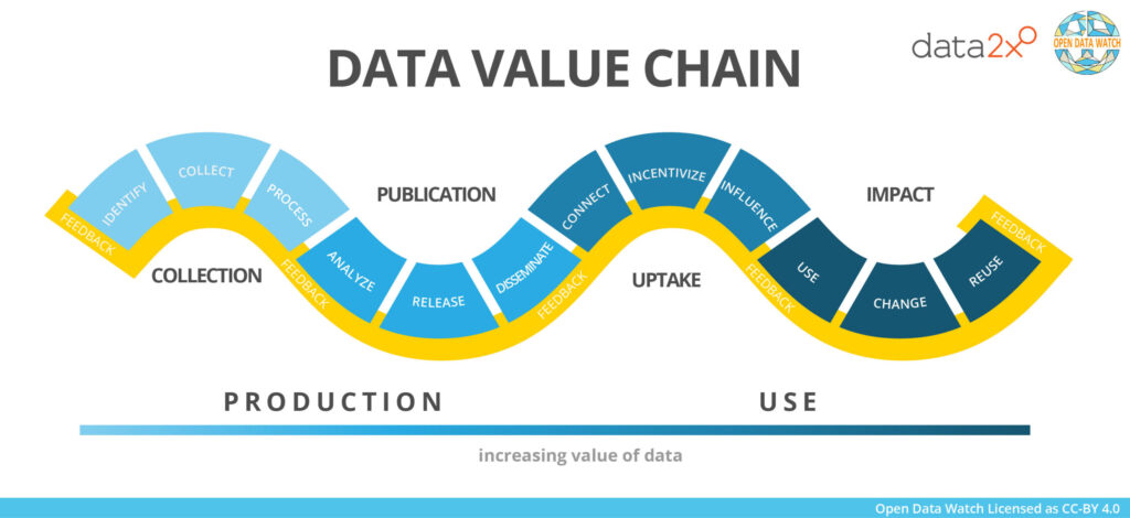 The data value chain visualizes the processes of data production and use.