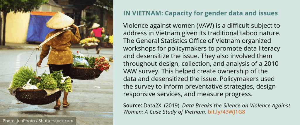 - Building capacity to use gender data and understand gender issues allows more people to use their skills to turn data into action.